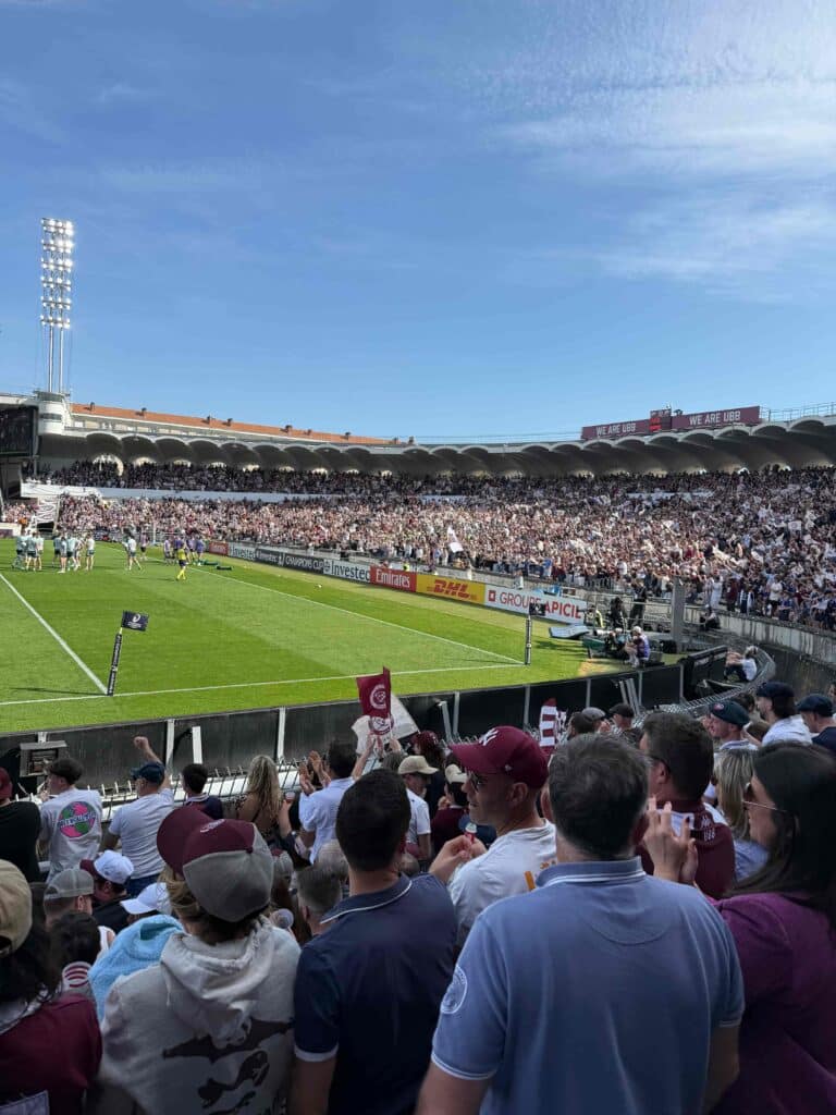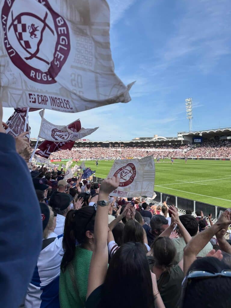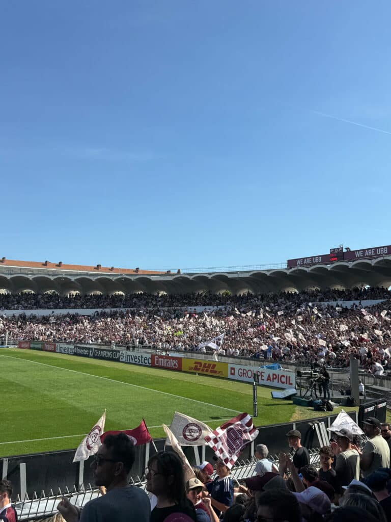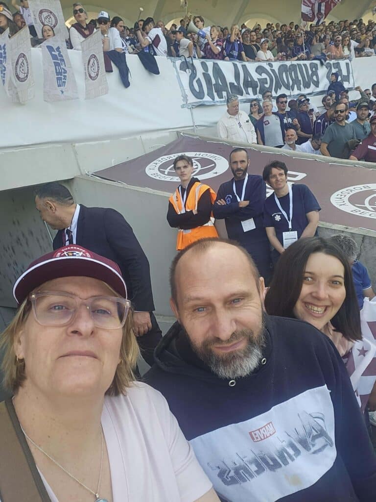 Quelques jours plus tard, le 5 avril, six nouvelles personnes accueillies au foyer de Martignas ont vécu une expérience tout aussi marquante au stade Chaban-Delmas, lors du match UBB vs Leicester. Une rencontre spectaculaire dans un stade rempli, conclue par une large victoire de l’UBB, qui a suscité enthousiasme et émotions chez les personnes accompagnées !