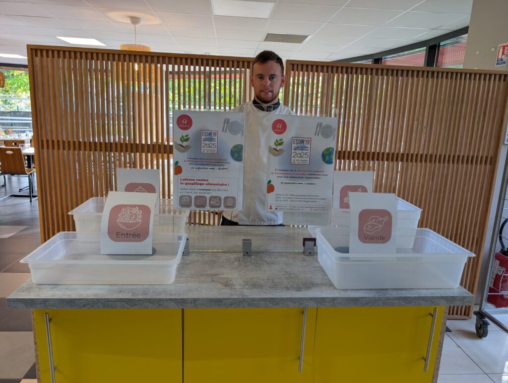 La Semaine européenne du développement durable (SEDD) est un moment fort pour sensibiliser et agir ensemble en faveur de la planète. Cette année, l’Adapei 33 a choisi, entre autres, de mettre en lumière un enjeu majeur dans ses établissements : la lutte contre le gaspillage alimentaire. À travers des actions concrètes, comme l’analyse et le tri des déchets dans les restaurants des établissements, l’association réaffirme son engagement en faveur d’une restauration plus responsable et respectueuse de l’environnement !
