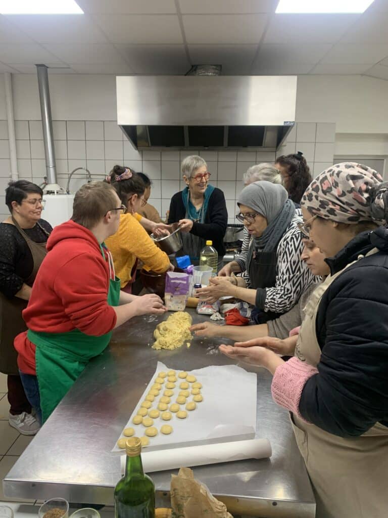 Les personnes accompagnées de l’Accueil de Jour du Foyer La Réole ont participé en janvier à une action bénévole d’envergure aux côtés de l’association Cuisine et Partage : la réalisation de pâtisseries destinées aux 700 convives attendus pour la cérémonie des vœux du maire. Une action collective forte, à la fois citoyenne, formatrice et valorisante pour les personnes accompagnées !