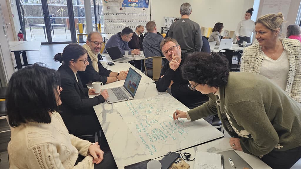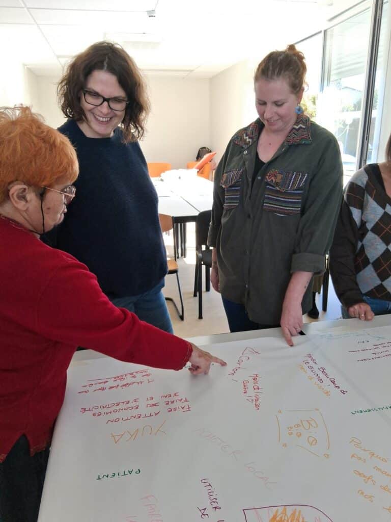 Animée par notre partenaire Véronique Humbert, cette journée a alterné temps d’échanges, ateliers collaboratifs et travail de projection. Le jeu des post-it, autour de la fresque du bilan carbone, a permis de faire émerger des idées concrètes et partagées, dans un climat favorable à la qualité de vie au travail.