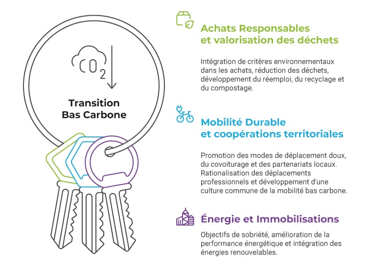 Trois axes de travail structurants ont été dégagés pour engager l’Adapei 33 dans une trajectoire bas carbone cohérente et réaliste