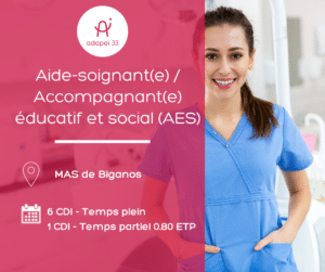 Nous recrutons aussi des profils que nous accompagnons à la formation notamment aux métiers d’AES et d’aide-soignant.