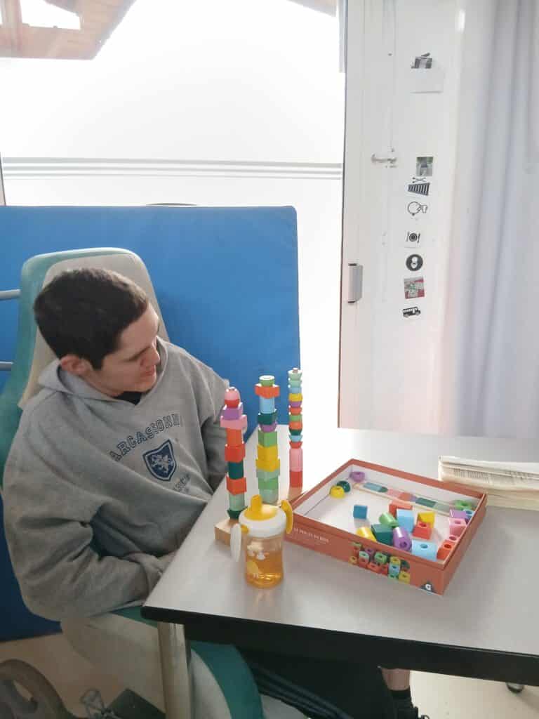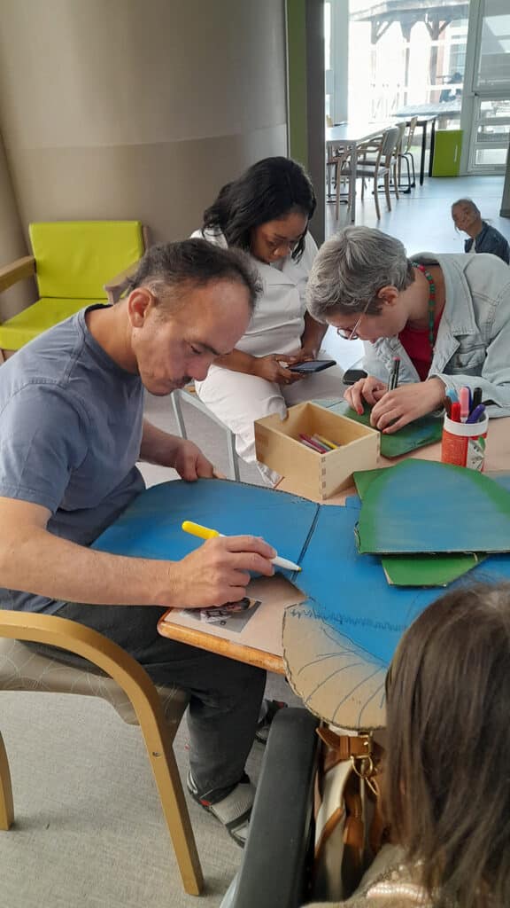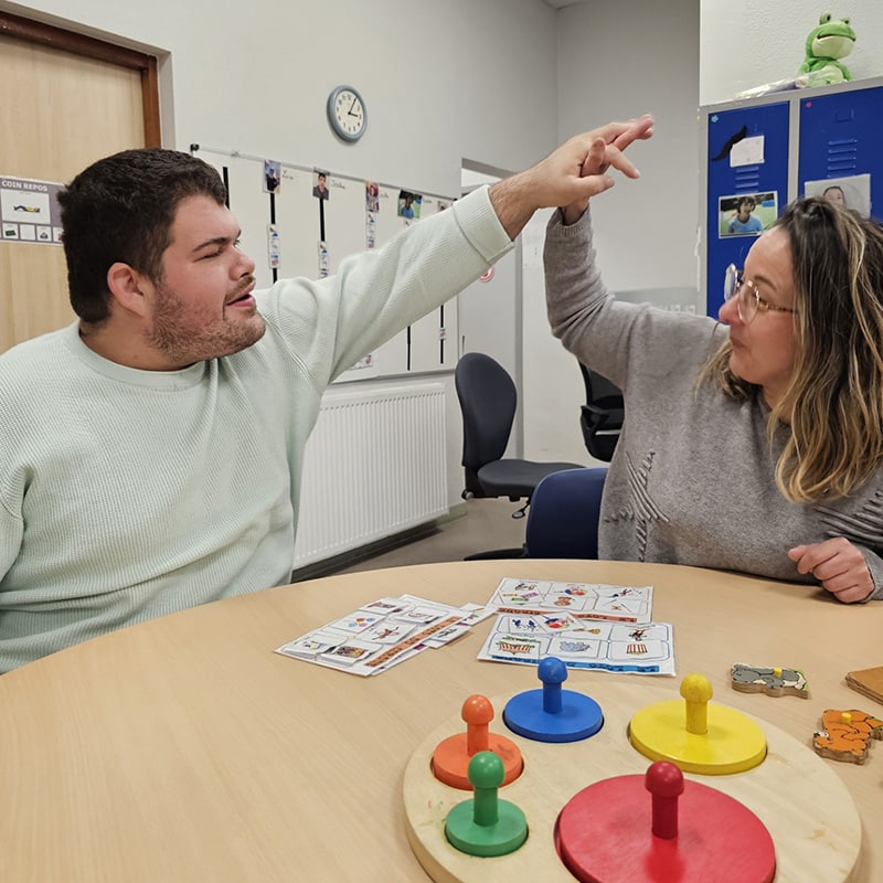 « L’an dernier, Maxime a été accueilli à l’accueil de jour avec de grandes difficultés de communication. Il s’exprimait principalement par gestes et ne parvenait pas à verbaliser ses besoins ou ses émotions. Des ateliers individuels dédiés à l’expression ont été mis en place dans un cadre sécurisant et structuré. Progressivement, Maxime a commencé à verbaliser quelques mots. Un cahier d’expression, mêlant mots et dessins, a permis de suivre et valoriser ses progrès. Aujourd’hui, il est capable de demander de l’aide, de s’exprimer spontanément et même de faire de l’humour, ce qui renforce ses interactions avec l’équipe. »