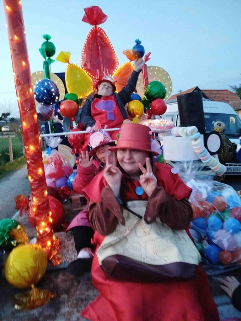 Début mars, les personnes accompagnées ont participé au carnaval de la ville de Gujan-Mestras, organisé cette fois-ci en nocturne autour du thème des sucreries. Fiers de leur char confectionné pour l’occasion, ils ont défilé dans les rues accompagnés d’un groupe de danseurs, guidés par leur professeure Orlane. Une belle chorégraphie qui a séduit le public et contribué à l’ambiance festive de la soirée, conclue par un impressionnant spectacle pyrotechnique.