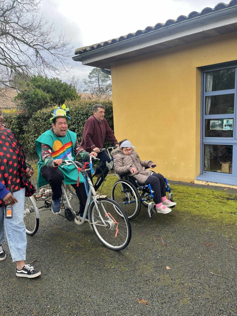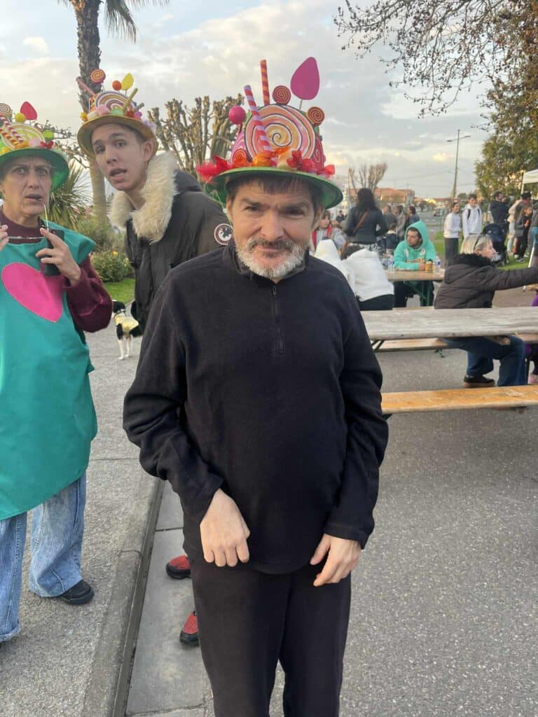 Quelques jours plus tard, le FO-FAM a souhaité prolonger cette dynamique en organisant un carnaval dans ses murs, afin de permettre à celles et ceux restés au sein de l’établissement de profiter également de ce moment. Pour l’occasion, plusieurs autres structures ont été invitées : l’IME de Taussat, le foyer de Martignas, l’association Du Temps pour Tous et la Croix-Rouge de Lanton. Malgré une météo capricieuse, une accalmie a permis aux participants de défiler autour du foyer lors d’une parade conviviale.