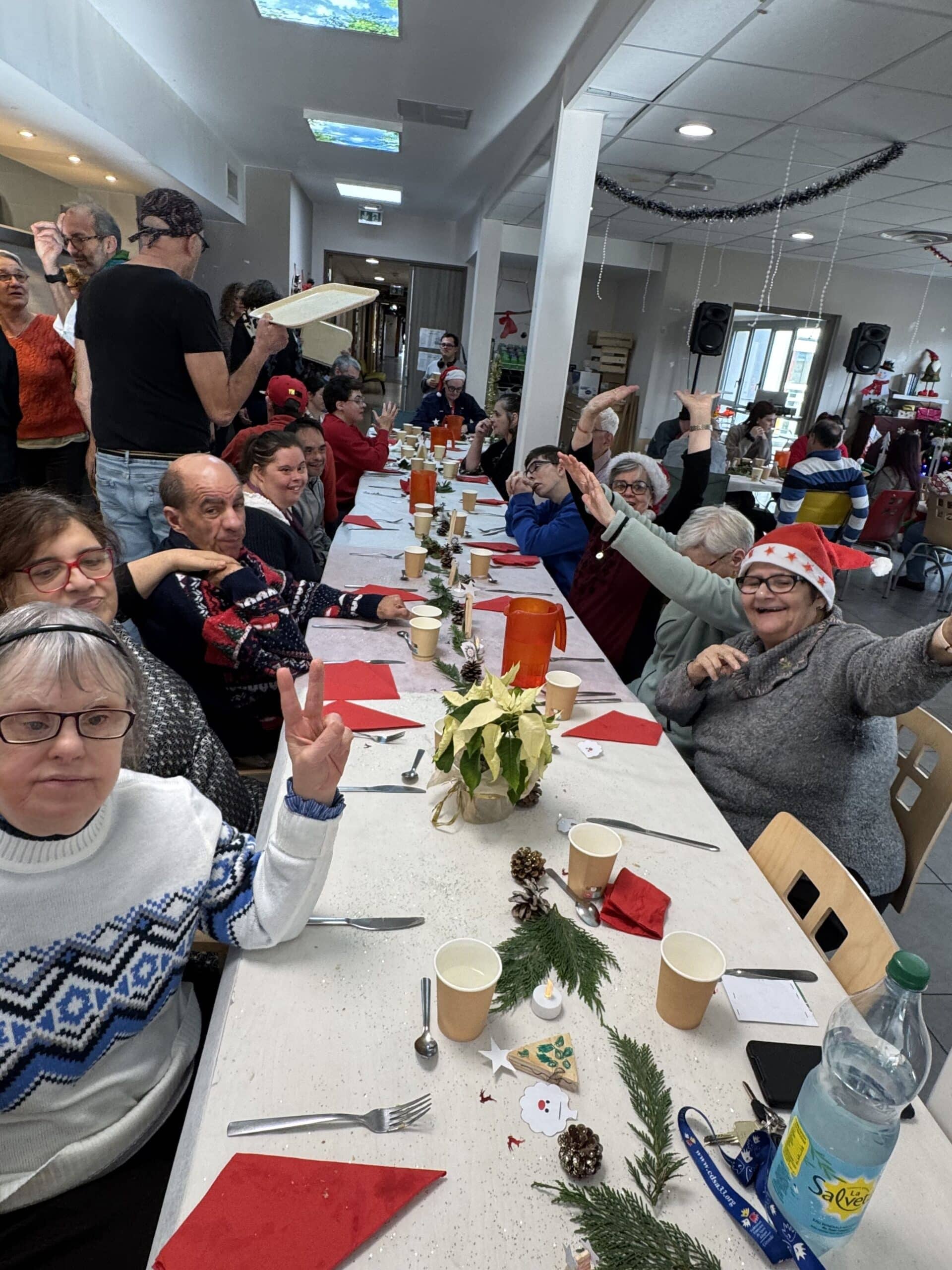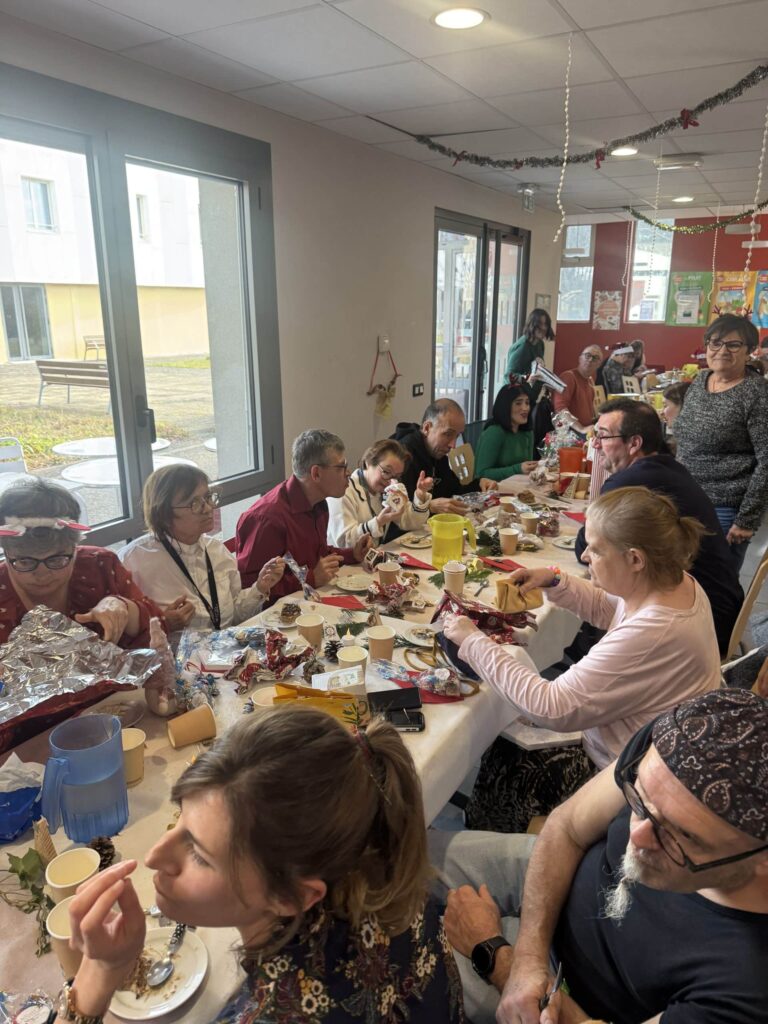 Le 16 décembre, le foyer de Martignas-sur-Jalles a célébré Noël un peu en avance autour d’un repas festif, réunissant personnes accompagnées et professionnels. Dès l’apéritif, l’ambiance était conviviale et détendue, annonçant une journée placée sous le signe de la bonne humeur et du plaisir d’être ensemble !