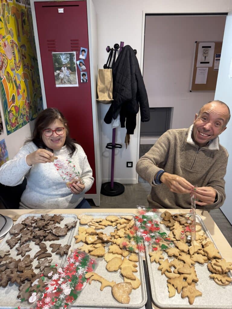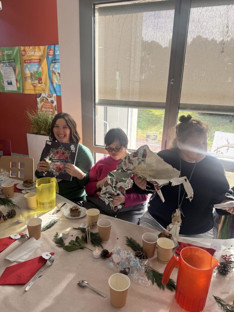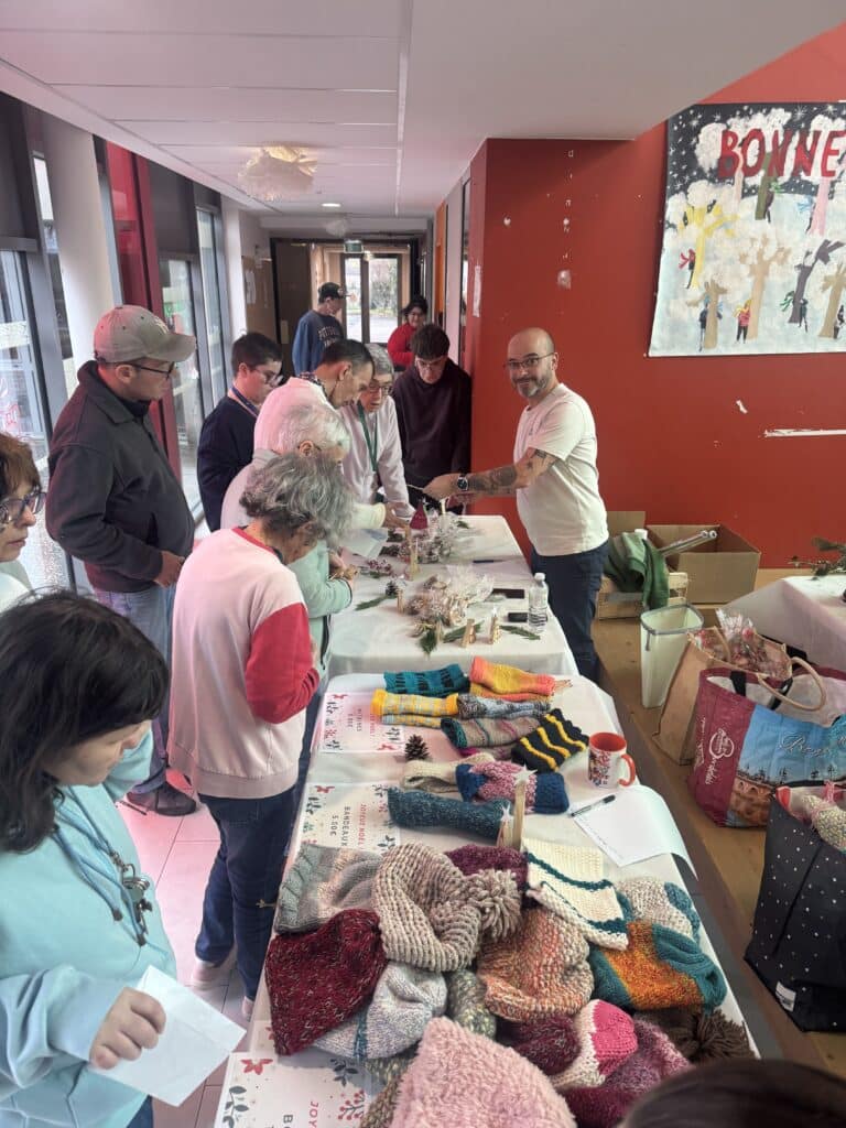 Le marché de Noël a également permis aux familles, professionnels et même personnes accompagnées du foyer d’acheter des articles à offrir pour les fêtes. Pour les résidents qui partaient en vacances, ce moment a pris un sens tout particulier : chacun a pu repartir avec une attention à offrir à ses proches, fruit du travail de personnes en situation de handicap… en somme, une vraie fierté et valorisation des résidents du foyer.