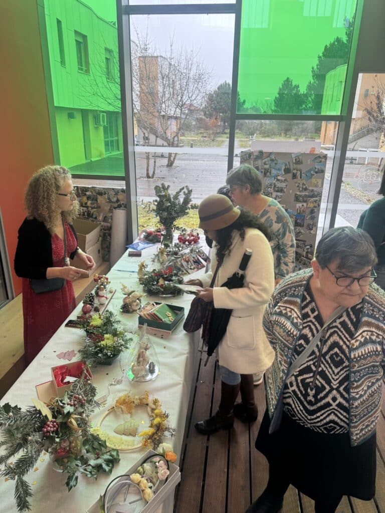 Plusieurs ateliers étaient proposés pour mettre en valeur la créativité et le savoir-faire des participants : art floral, tricot, préparation de sablés et de chocolats de Noël, sans oublier le stand de cidre chaud, particulièrement apprécié par les visiteurs ! Durant le mois précédant l’événement, les résidents se sont mobilisés avec enthousiasme pour finaliser leurs créations, confectionnées avec soin et fierté.