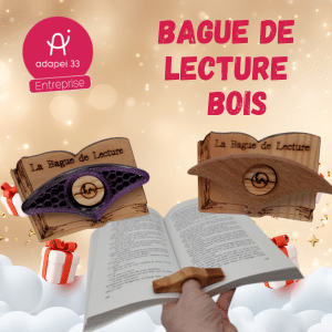 Bague de lecture en résine ou en bois. Elle maintient vos pages d’une seule main, évite la fatigue des doigts et protège vos livres.