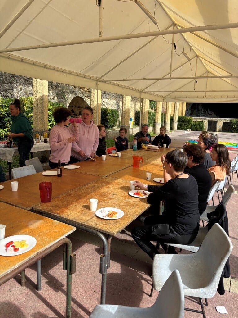 L’auberge espagnole qui a suivi la randonnée a prolongé cette dynamique. Autour d’un repas convivial et de quelques jeux, les discussions se sont d’autant plus ouvertes et les liens davantage renforcés. Ces temps partagés renforcent la confiance mutuelle et améliorent la compréhension réciproque des situations de chacun. Ils contribuent à construire un accompagnement plus fluide et plus serein, et s’inscrit totalement dans les engagements du projet associatif 2024-2028 de l’Adapei 33, à travers l’engagement #8 ‘Favoriser les initiatives partagées entre parents et professionnels’.